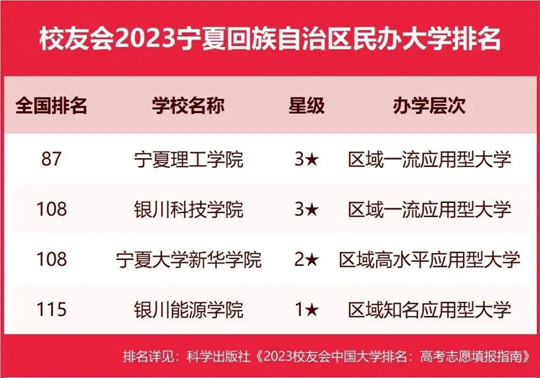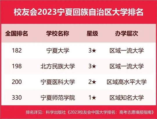 | 校友會(huì)2023寧夏回族自治區(qū)大學(xué)排名,寧夏大學(xué)、寧夏理工學(xué)院等第一 |