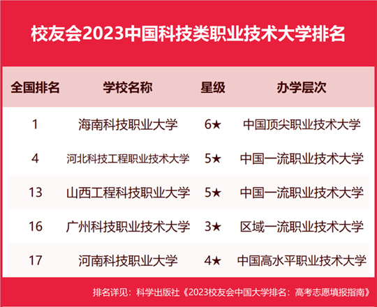 海南科技職業(yè)大學(xué)奪得2023中國(guó)科技類職業(yè)技術(shù)大學(xué)排名冠軍,山西工程科技職業(yè)大學(xué)前三