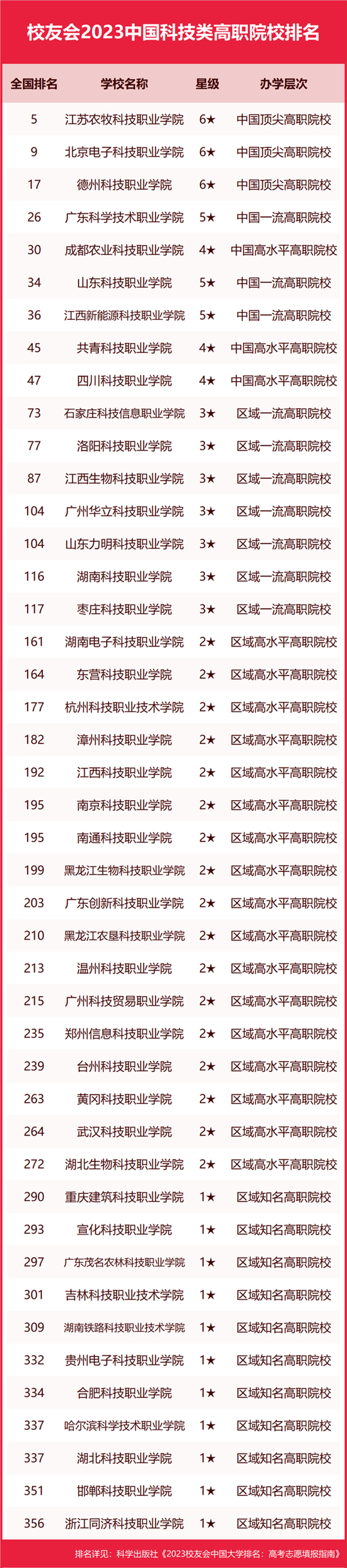 江蘇農(nóng)牧科技職業(yè)學(xué)院高居2023中國(guó)科技類高職院校排名榜首,德州科技職業(yè)學(xué)院前三
