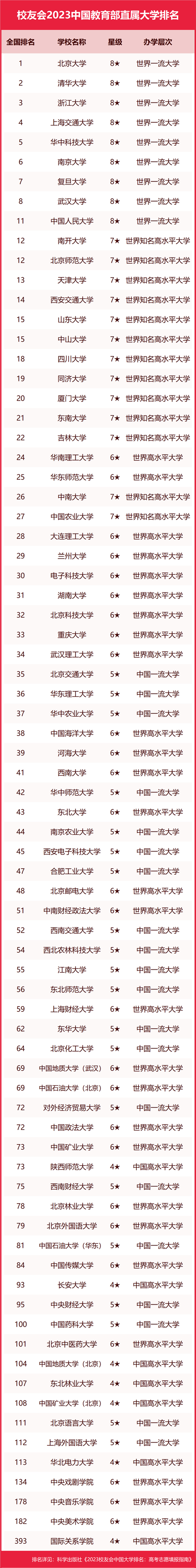 | 校友會2023中國教育部直屬大學(xué)排名,北京大學(xué)第一,南開大學(xué)前十 |