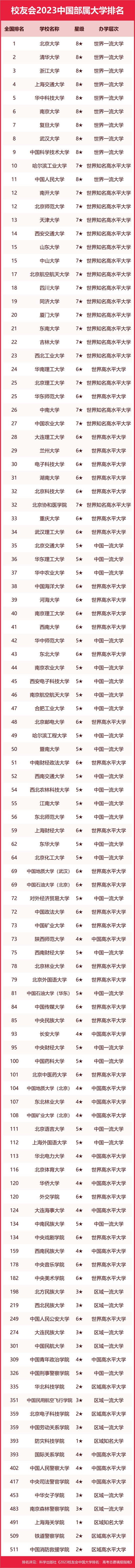 | 校友會(huì)2023中國(guó)部屬大學(xué)排名,北京大學(xué)第一,武漢大學(xué)第八 |