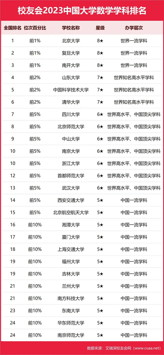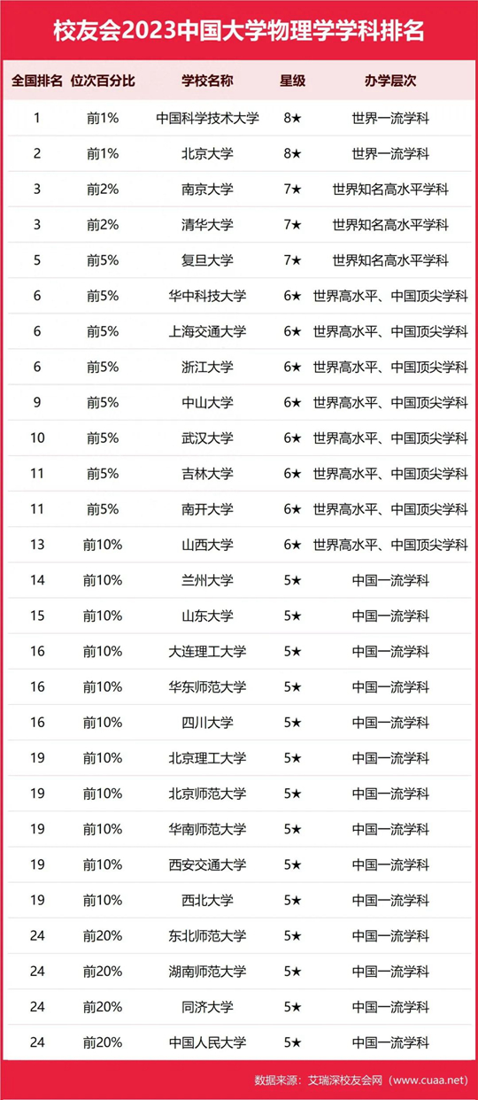 | 校友會2023中國大學(xué)理學(xué)門類一流學(xué)科排名,北京大學(xué)第一,中國科學(xué)技術(shù)大學(xué)第三 |
