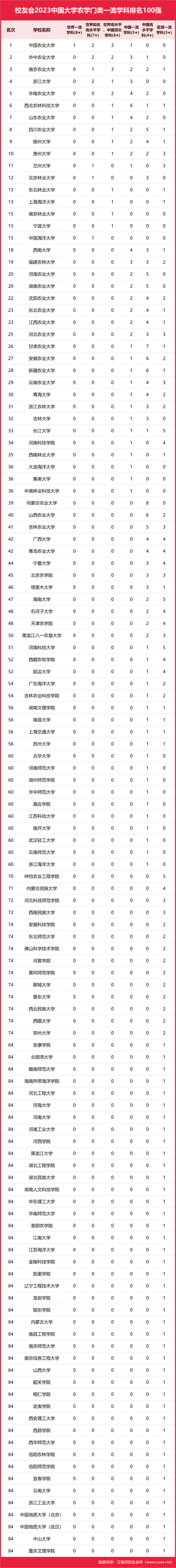 | 校友會2023中國大學農(nóng)學門類一流學科排名,中國農(nóng)業(yè)大學第一,南京農(nóng)業(yè)大學第三 |