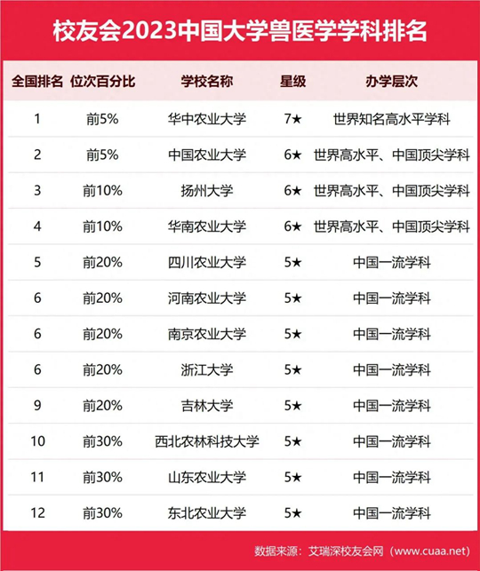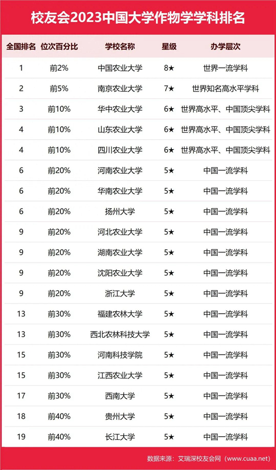 2023年9月12日,全國第三方大學評價機構艾瑞深校友會網(wǎng)(Cuaa.net)最新發(fā)布校友會2023中國大學一流學科排名和2023中國大學農(nóng)學門類一流學科排名。