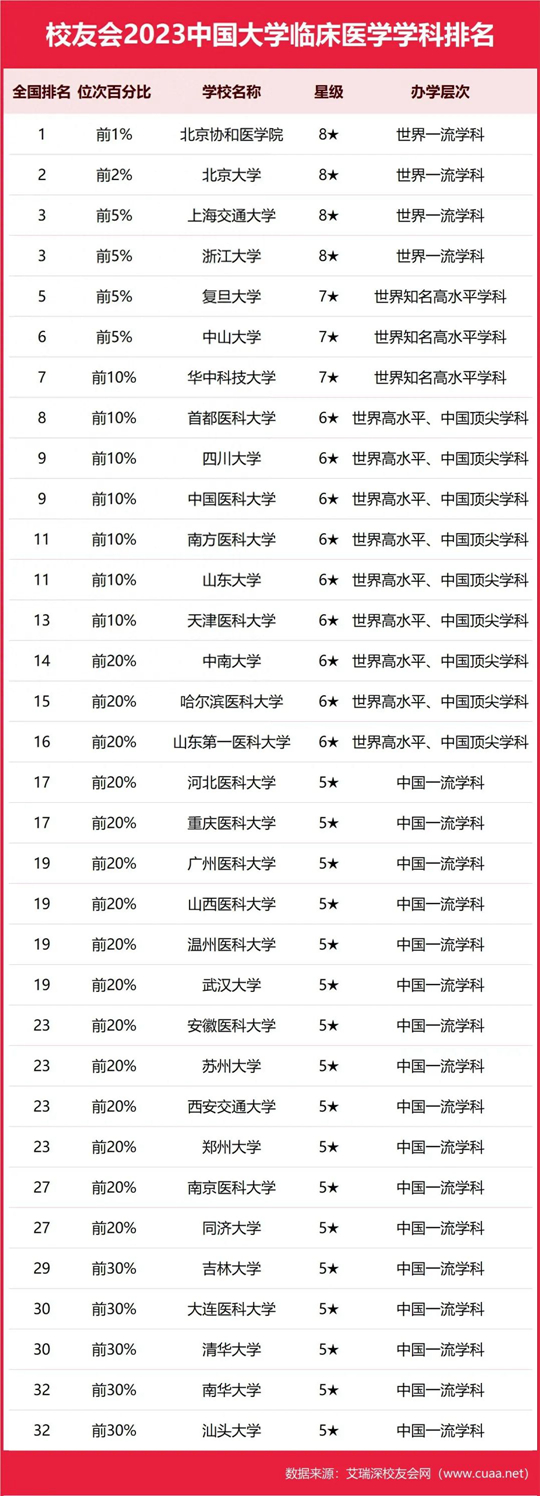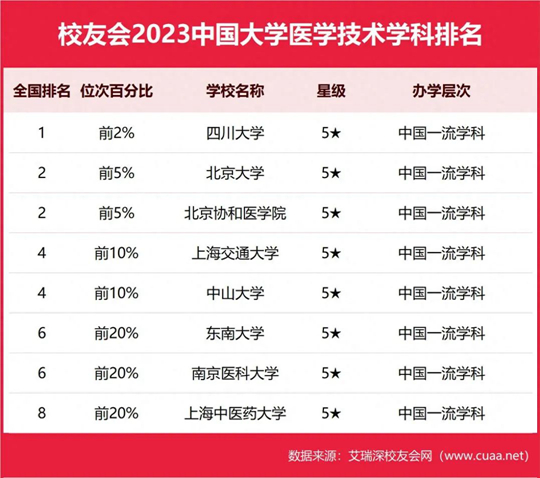 | 校友會(huì)2023中國(guó)大學(xué)醫(yī)學(xué)門(mén)類一流學(xué)科排名,北京大學(xué)第一,北京協(xié)和醫(yī)學(xué)院第二 |