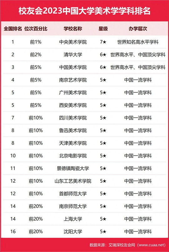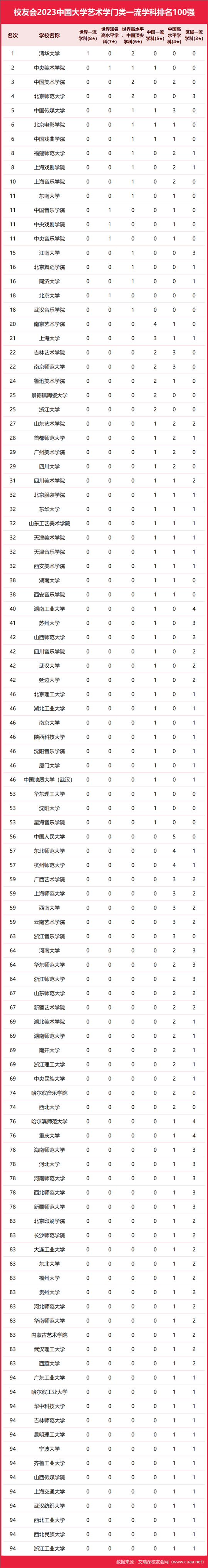 | 校友會(huì)2023中國大學(xué)藝術(shù)學(xué)門類一流學(xué)科排名,清華大學(xué)第一,中央美術(shù)學(xué)院第二 |
