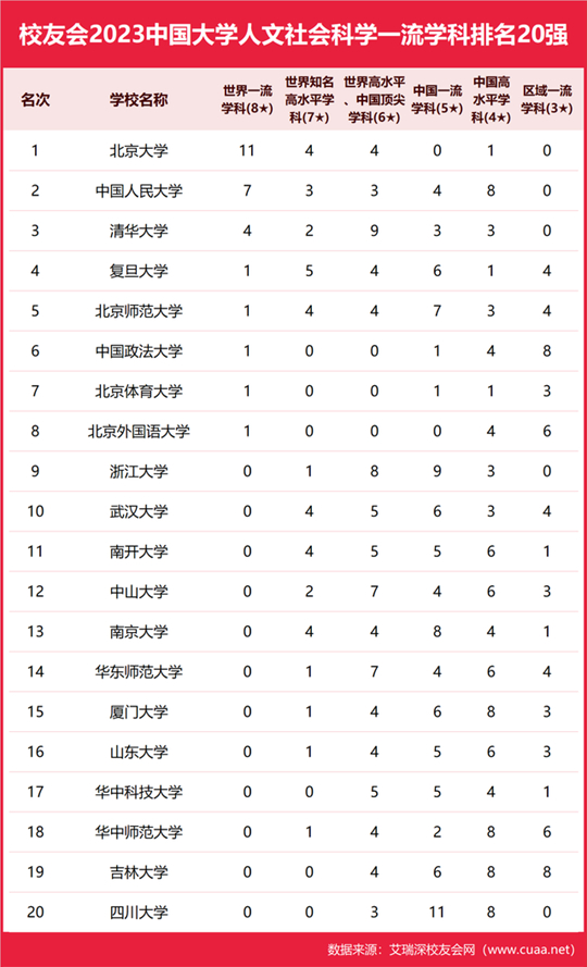 北京大學(xué)雄居2023中國大學(xué)人文社會科學(xué)一流學(xué)科排名榜首,中國人民大學(xué)第二,清華大學(xué)第三