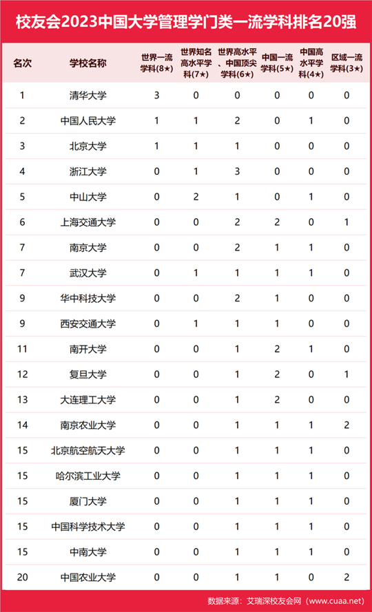2023年9月12日,全國第三方大學(xué)評價(jià)機(jī)構(gòu)艾瑞深校友會網(wǎng)(Cuaa.net)最新發(fā)布校友會2023中國大學(xué)一流學(xué)科排名和2023中國大學(xué)各學(xué)科門類一流學(xué)科排名。