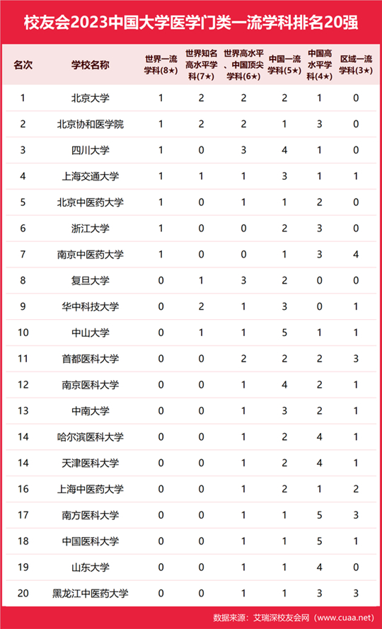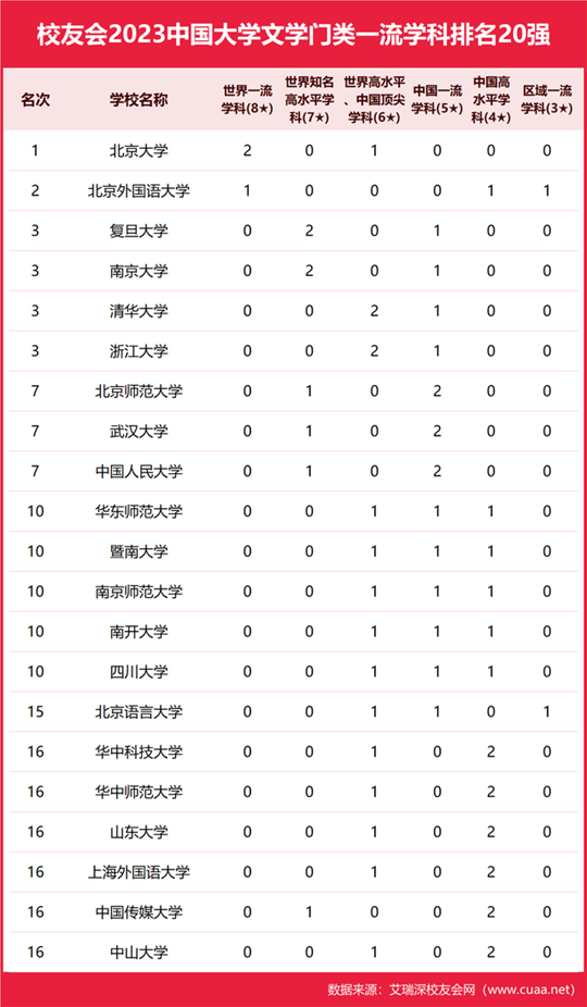 | 校友會2023中國大學(xué)各學(xué)科門類一流學(xué)科排名,北京大學(xué)、清華大學(xué)雄居第一 |