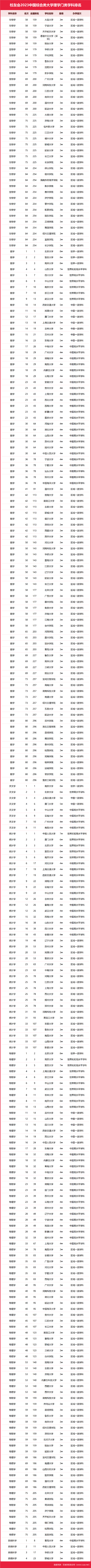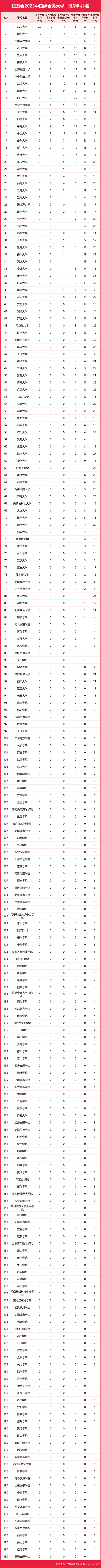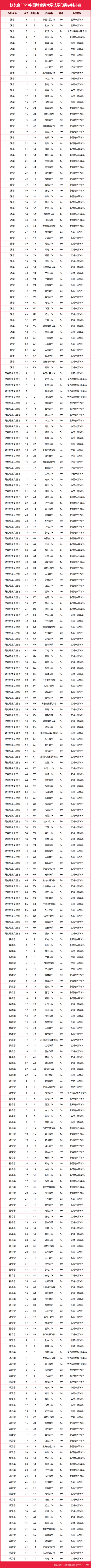 | 校友會2023中國綜合類大學一流學科排名,北京大學第一,中國人民大學第三 |