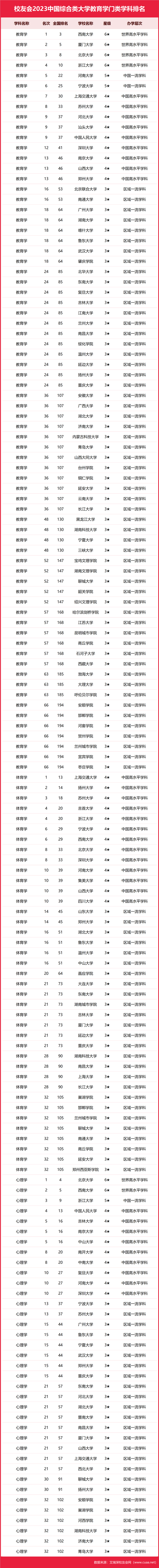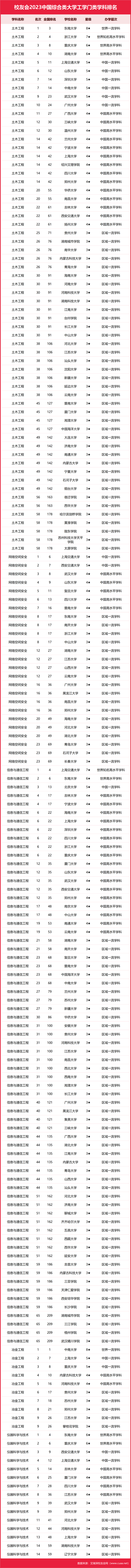 2023年9月12日,全國第三方大學評價機構艾瑞深校友會網(wǎng)(Cuaa.net)最新發(fā)布校友會2023中國大學一流學科排名、2023中國綜合類大學一流學科排名。