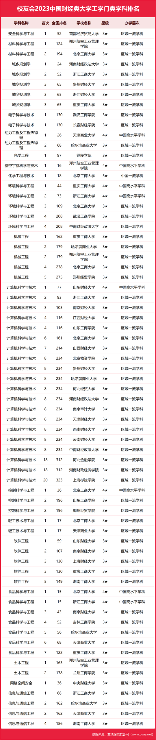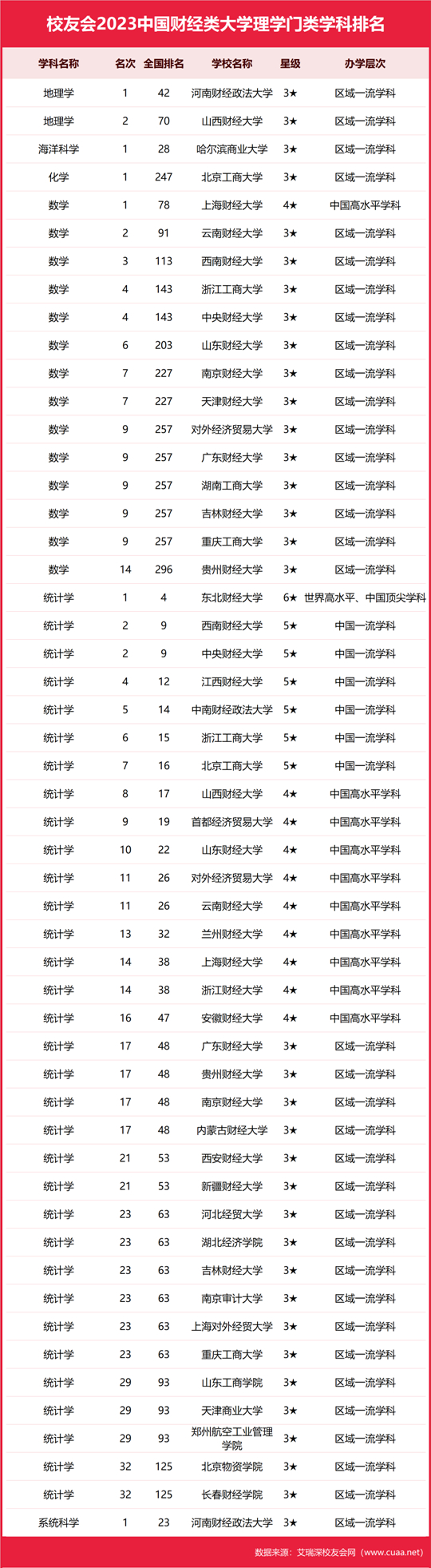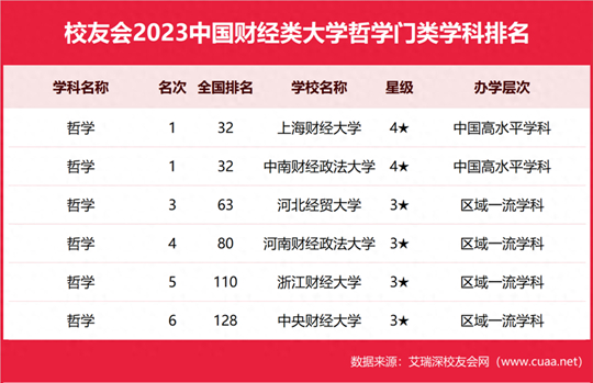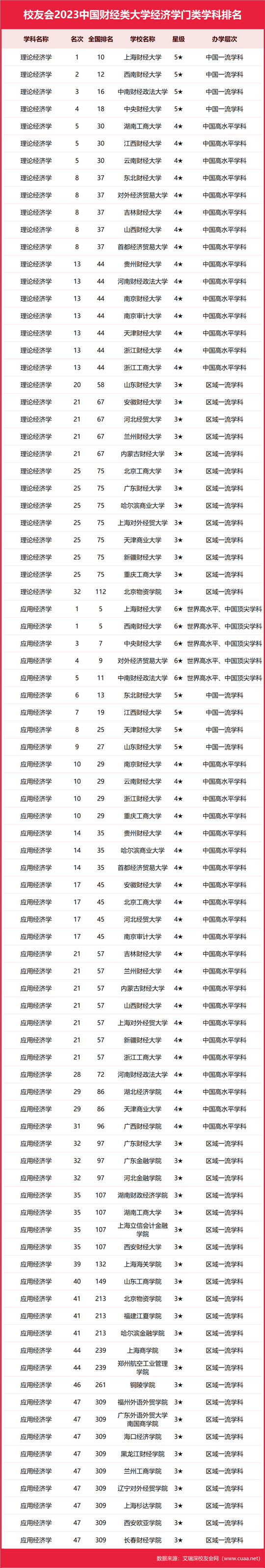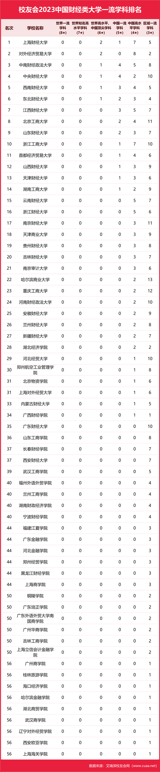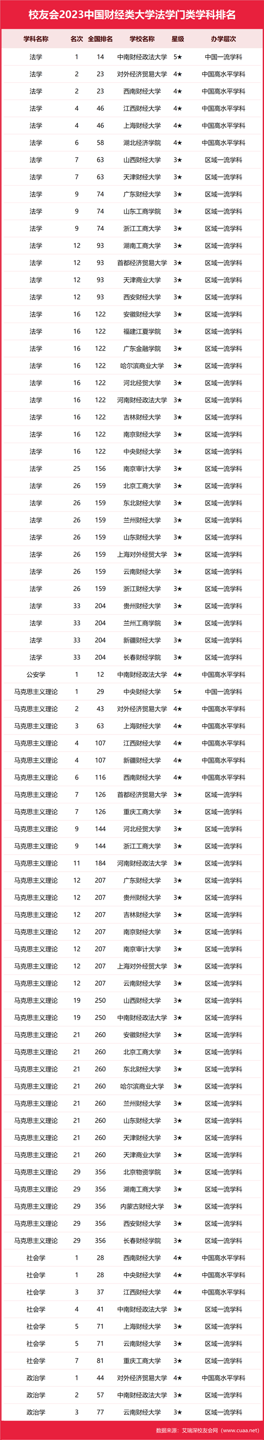 | 校友會2023中國財(cái)經(jīng)類大學(xué)一流學(xué)科排名,上海財(cái)經(jīng)大學(xué)第一,中南財(cái)經(jīng)政法大學(xué)第三 |