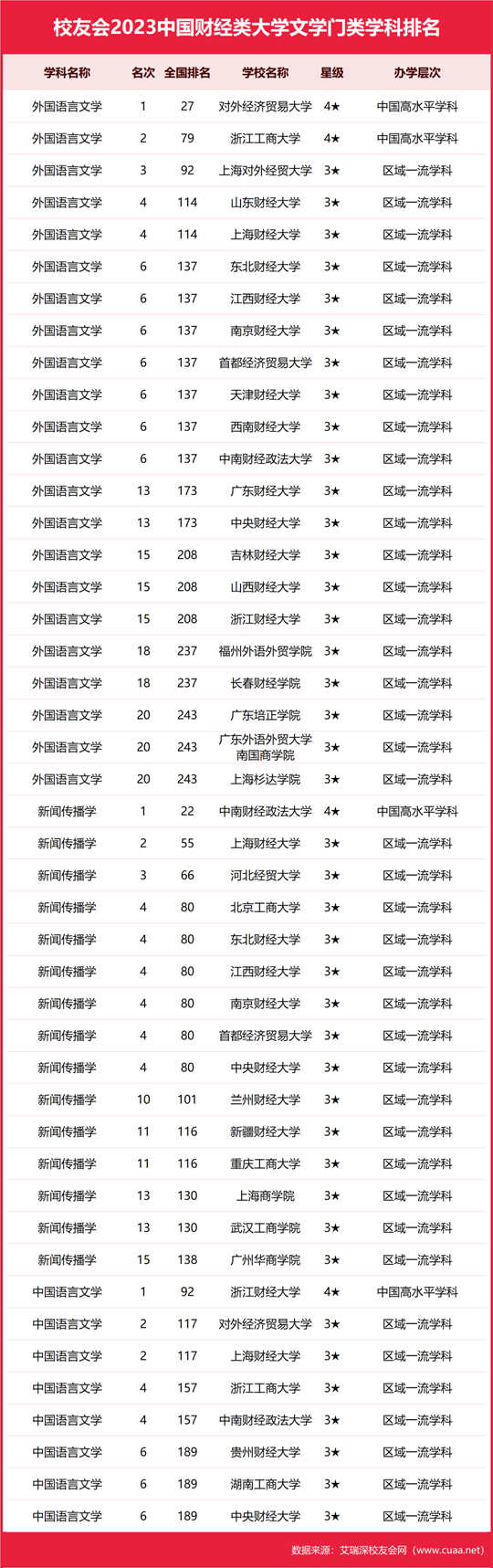 2023年9月12日,全國第三方大學(xué)評價(jià)機(jī)構(gòu)艾瑞深校友會網(wǎng)(Cuaa.net)最新發(fā)布校友會2023中國大學(xué)一流學(xué)科排名、2023中國財(cái)經(jīng)類大學(xué)一流學(xué)科排名。