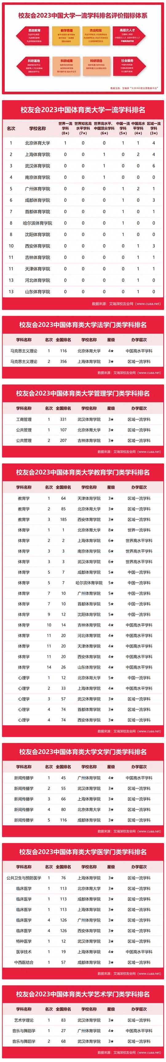 | 校友會2023中國體育類大學一流學科排名,北京體育大學第一,上海體育學院第二 |