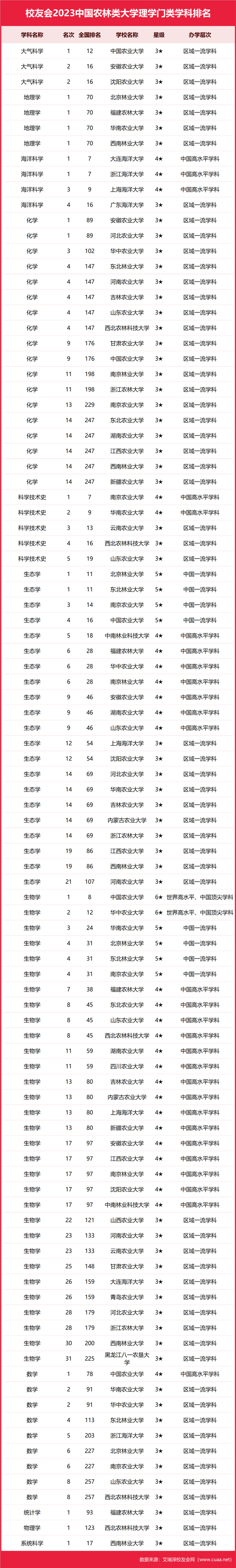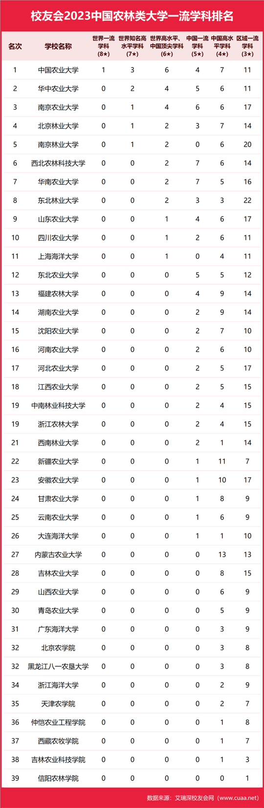 | 校友會(huì)2023中國(guó)農(nóng)林類大學(xué)一流學(xué)科排名,中國(guó)農(nóng)業(yè)大學(xué)第一,南京農(nóng)業(yè)大學(xué)第三 |