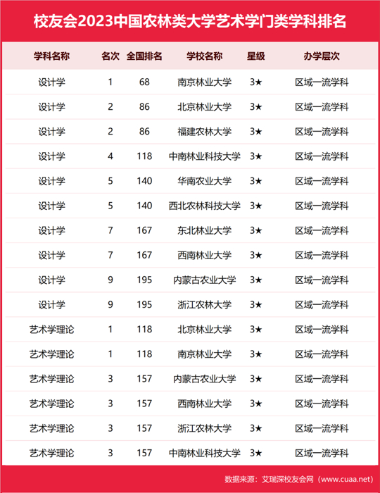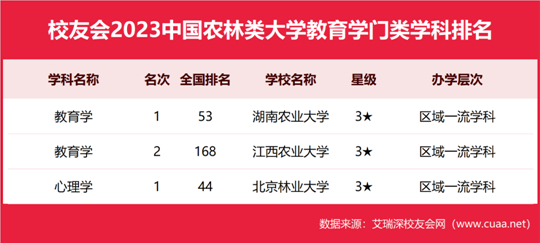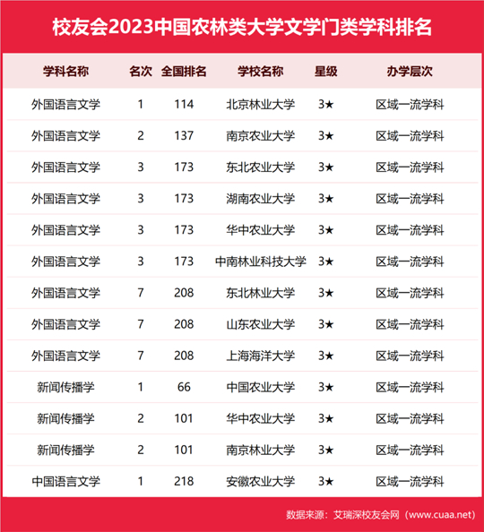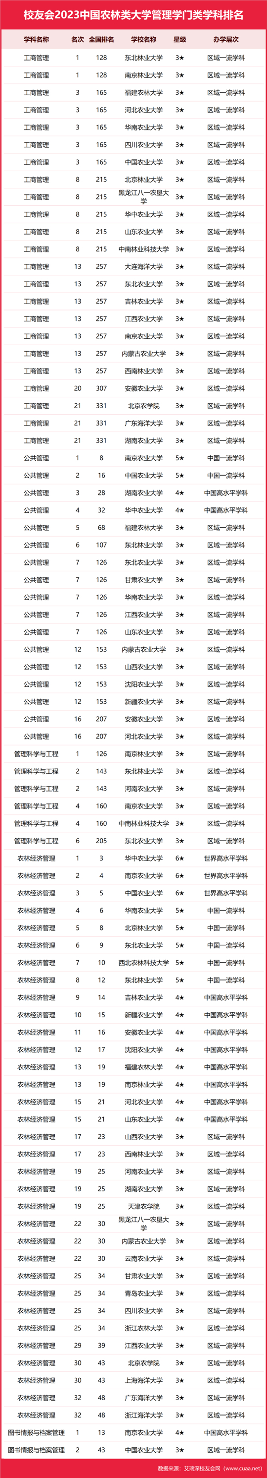 2023年9月12日,全國(guó)第三方大學(xué)評(píng)價(jià)機(jī)構(gòu)艾瑞深校友會(huì)網(wǎng)(Cuaa.net)最新發(fā)布校友會(huì)2023中國(guó)大學(xué)一流學(xué)科排名、2023中國(guó)農(nóng)林類大學(xué)一流學(xué)科排名。