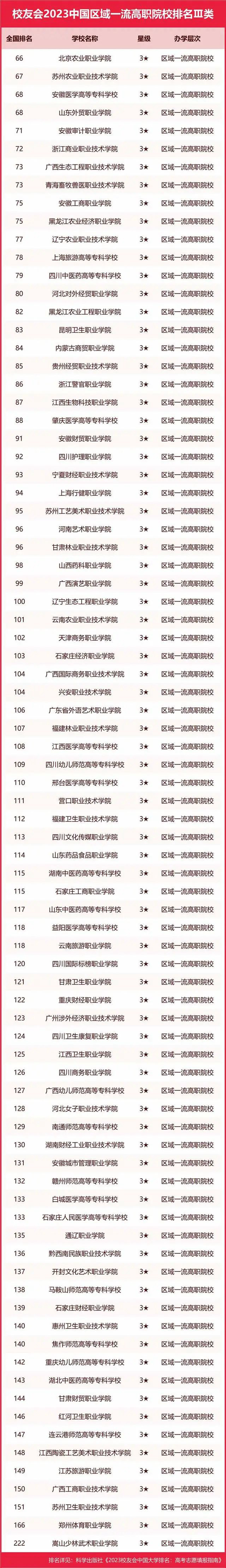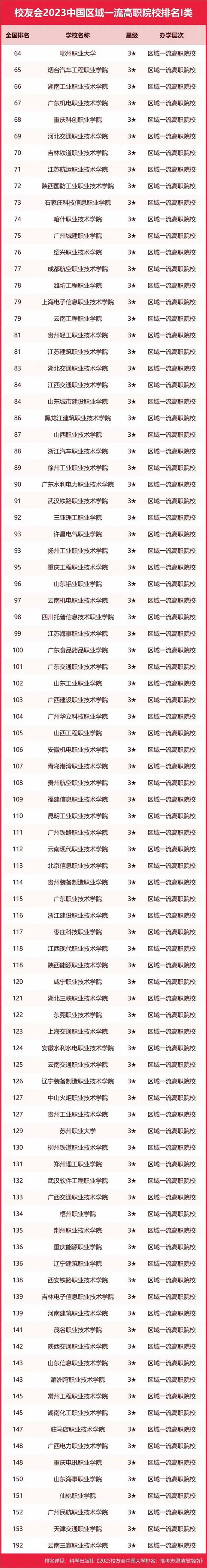 校友會2023中國高職院校分級與分層排名綜合2023中國高職院校綜合實力排名和2023中國高職院校星級排名將中國高校劃分為6個層次與等級。