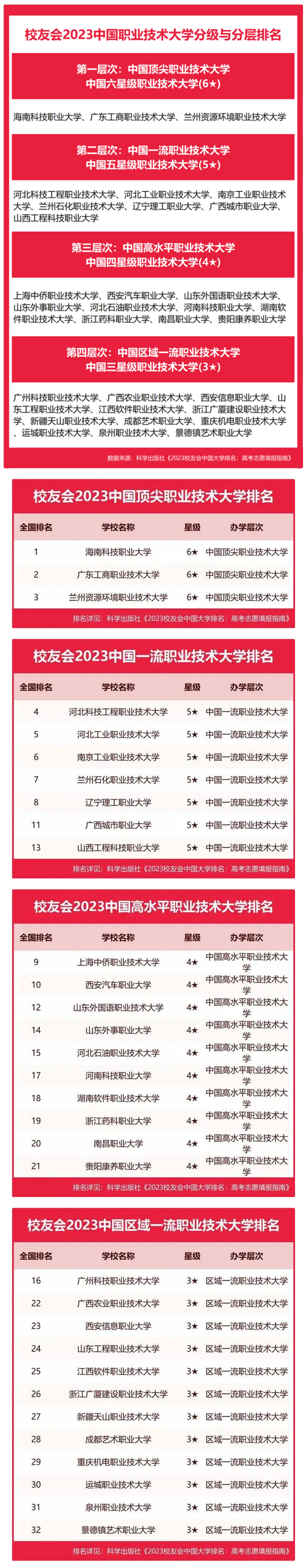| 重磅!校友會2023中國職業(yè)技術大學分級排名,海南科技職業(yè)大學雄霸第一 |