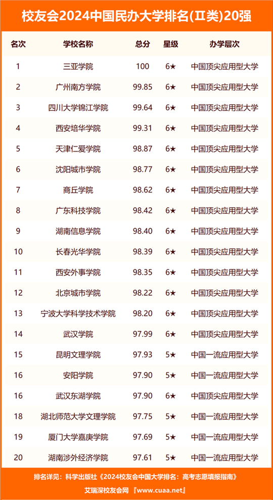 武昌首義學(xué)院、三亞學(xué)院、西安歐亞學(xué)院雄居校友會2024中國民辦大學(xué)排名第一