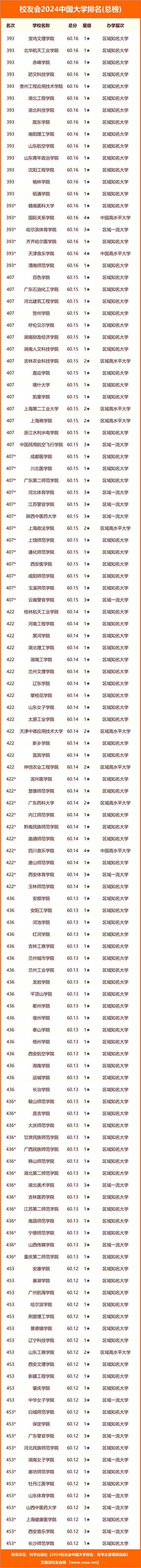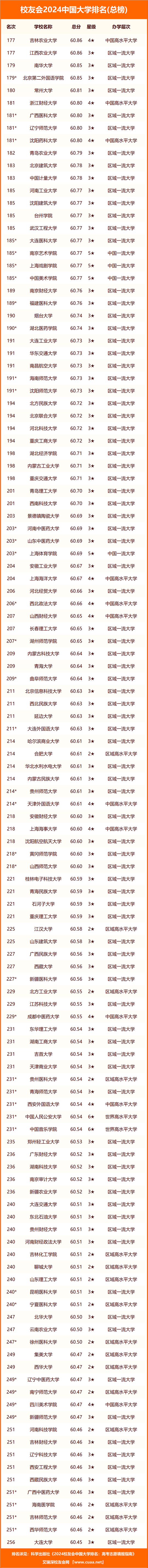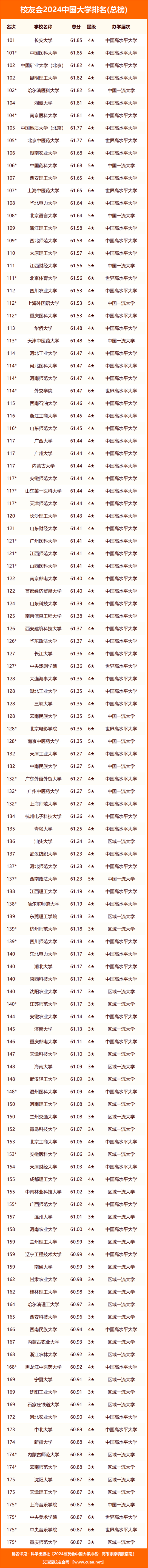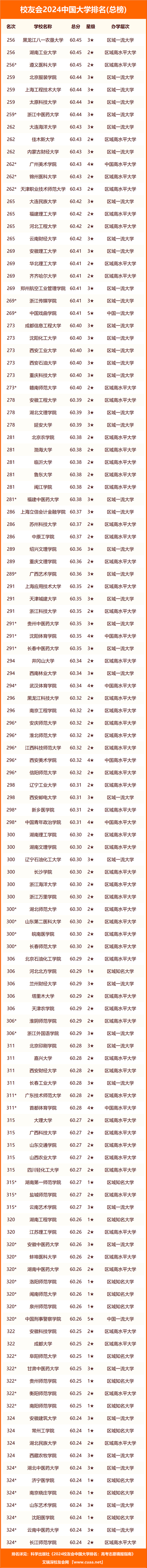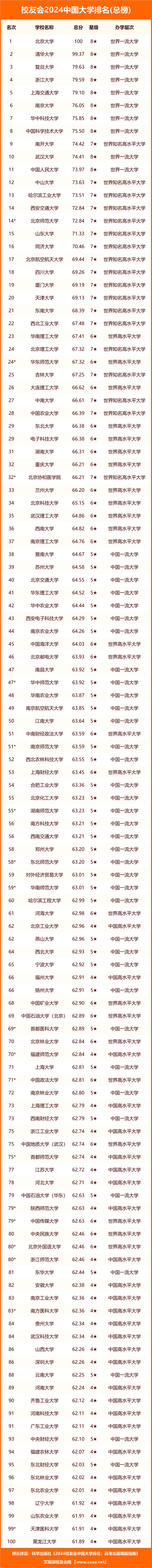 校友會2024中國大學(xué)排名完整榜單