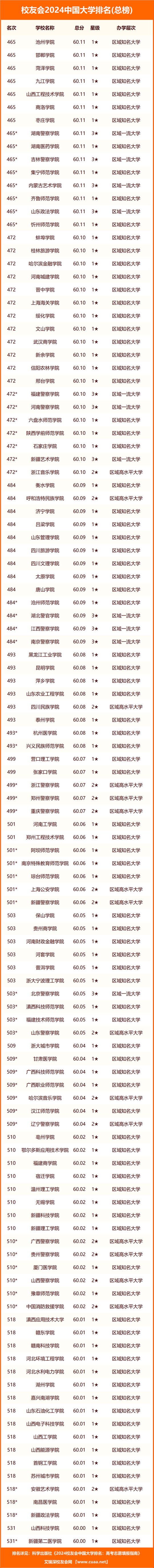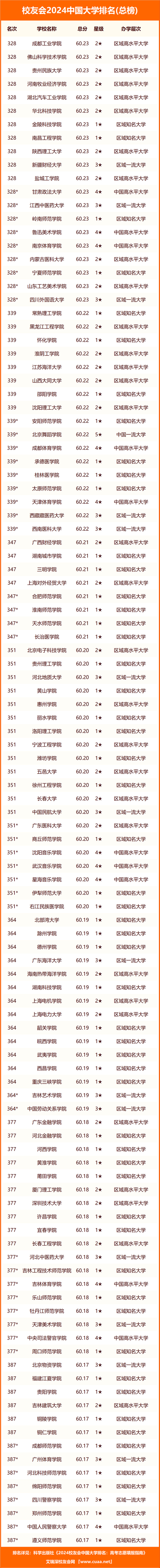 為了便于廣大讀者比較分析校友會2024中國大學(xué)排名所有參評高校的全國排名情況,我們以2024中國大學(xué)排名(總榜)的形式呈現(xiàn)所有參評高校的排名,其中標(biāo)*院校的名次為其全國參考排名。