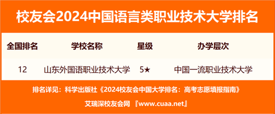 山東外國語職業(yè)技術大學位居校友會2024中國語言類職業(yè)技術大學排名第1。
