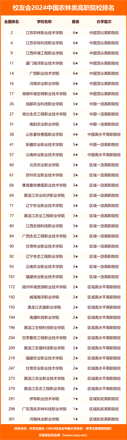 江蘇農(nóng)林職業(yè)技術(shù)學(xué)院珠江學(xué)院雄居2024中國農(nóng)林類高職院校排名冠軍,江蘇農(nóng)牧科技職業(yè)學(xué)院第二
