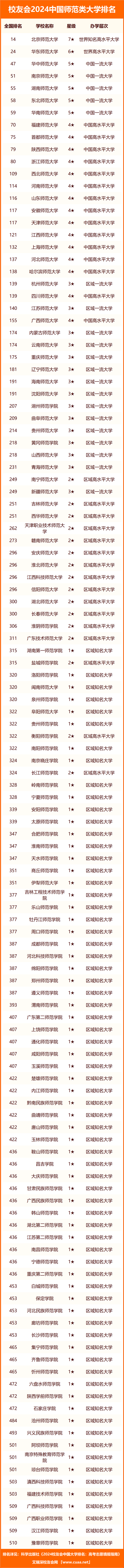 | 校友會2024中國師范類大學(xué)排名,北京師范大學(xué)、南京師范大學(xué)泰州學(xué)院、銅仁幼兒師范高等專科學(xué)校第一 |