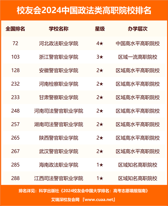 河北政法職業(yè)學(xué)院高居2024中國(guó)政法類高職院校排名首位,安徽警官職業(yè)學(xué)院前三