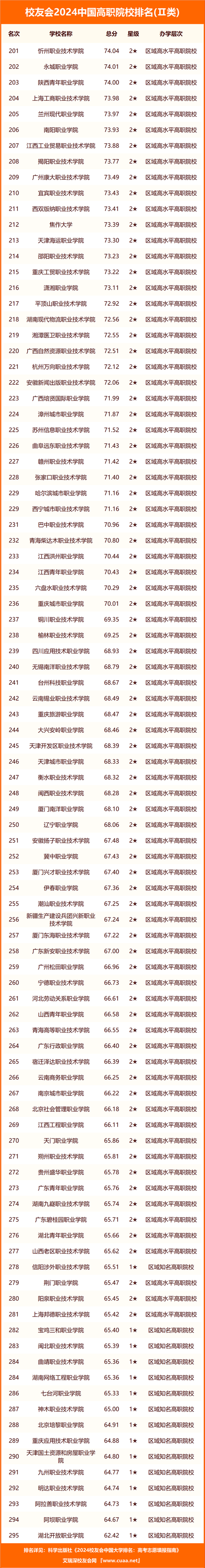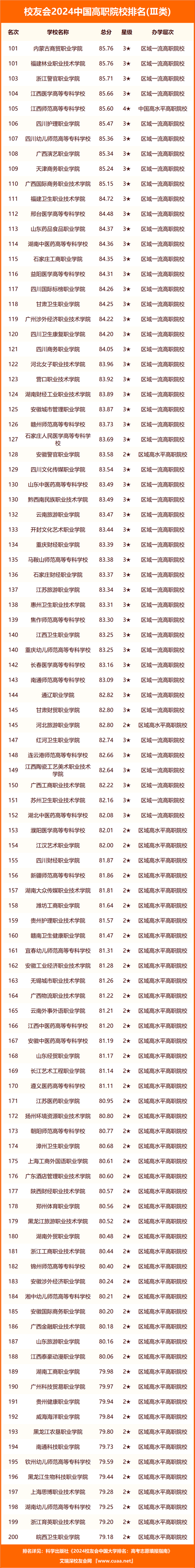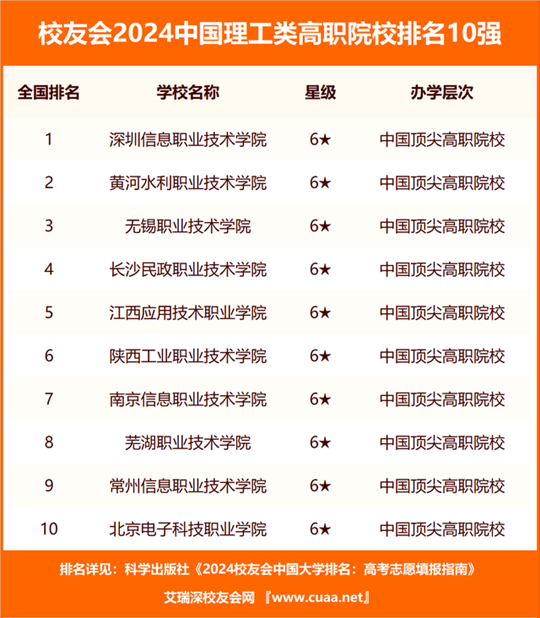 2024年1月16日,全國第三方大學評價機構艾瑞深校友會網(wǎng)(Cuaa.net)正式公布《2024校友會中國大學排名:高考志愿填報指南》,最新發(fā)布校友會2024中國高職院校排名,該書將由科學出版社公開出版發(fā)行。
