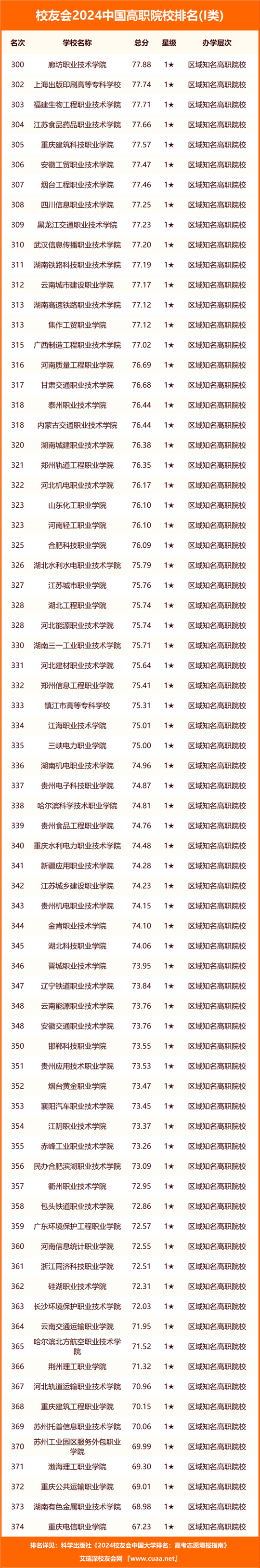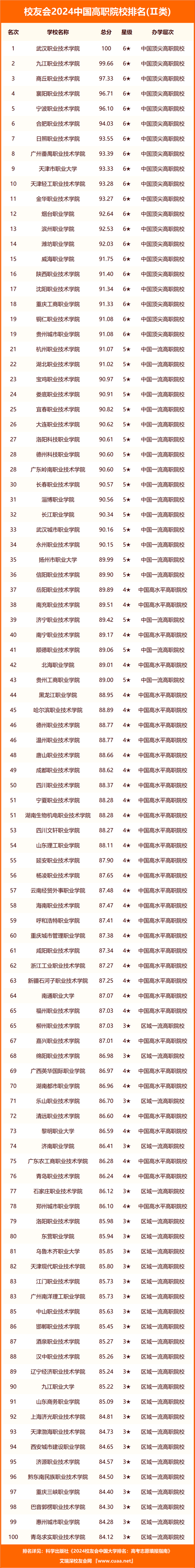 | 校友會2024中國高職院校排名,深圳信息職業(yè)技術學院等第一 |