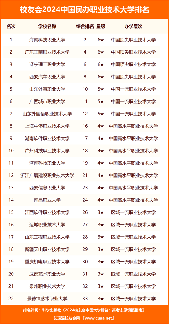 海南科技職業(yè)大學(xué)雄居2024中國(guó)民辦職業(yè)技術(shù)大學(xué)排名第一,西安汽車職業(yè)大學(xué)前四
