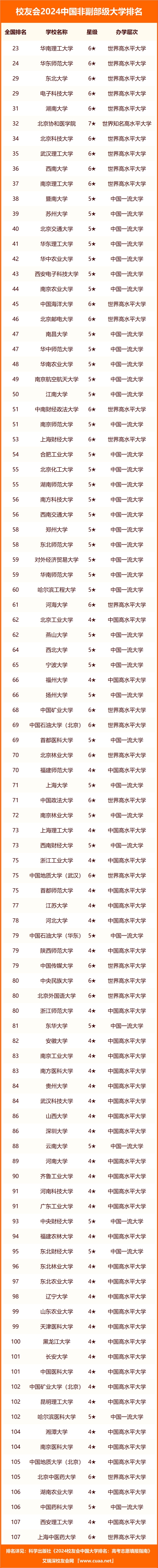 為給2024年全國高考考生報考中國非副部級高校提供參考,2024年1月16日,全國第三方大學評價機構艾瑞深校友會網(wǎng)(Cuaa.net)公布《2024校友會中國大學排名:高考志愿填報指南》,華南理工大學、華東師范大學、東北大學、電子科技大學、湖南大學雄踞校友會2024中國非副部級大學排名前五強,該書將由科學出版社公開出版發(fā)行。