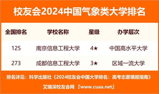 | 校友會2024中國氣象類大學(xué)排名,南京信息工程大學(xué)第一 |