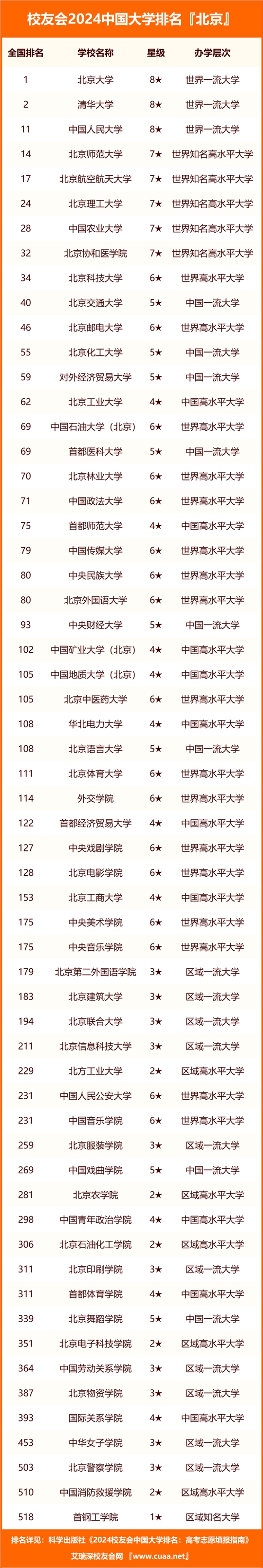 | 校友會2024北京市大學(xué)排名,北京大學(xué)、北京城市學(xué)院、北京電子科技職業(yè)學(xué)院第一 |
