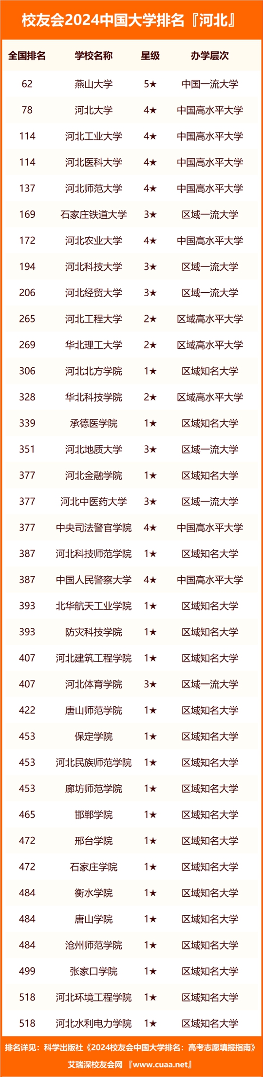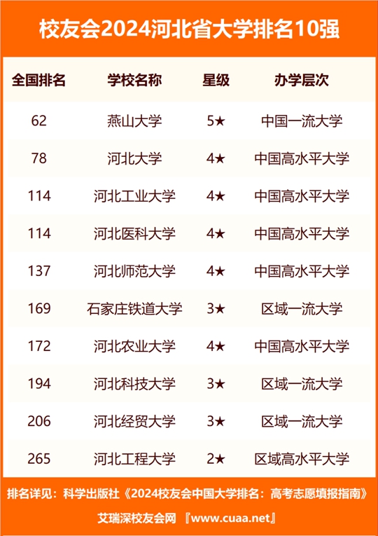為給2024年全國高考考生選擇填報(bào)河北省高校提供參考,2024年1月16日,全國第三方大學(xué)評價(jià)機(jī)構(gòu)艾瑞深校友會網(wǎng)(Cuaa.net)正式公布《2024校友會中國大學(xué)排名:高考志愿填報(bào)指南》,發(fā)布最新校友會2024河北省大學(xué)排名,該書將由科學(xué)出版社公開出版發(fā)行。