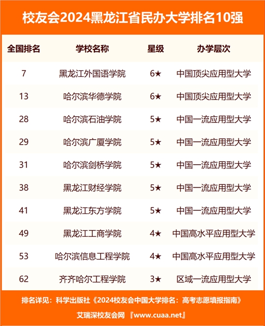 黑龍江外國語學(xué)院雄居2024黑龍江省民辦大學(xué)排名第一,哈爾濱華德學(xué)院第二