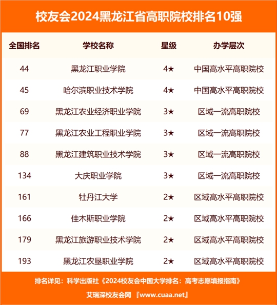 黑龍江職業(yè)學(xué)院高居2024黑龍江省高職院校排名首位,哈爾濱職業(yè)技術(shù)學(xué)院第二