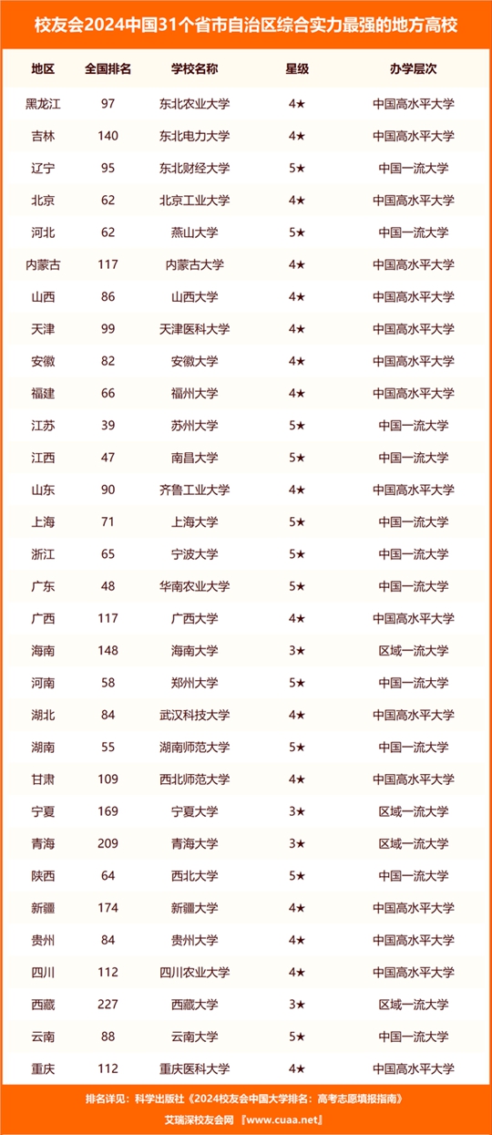 | 校友會(huì)2024中國地方大學(xué)排名,43所高校躋身全國百強(qiáng) |