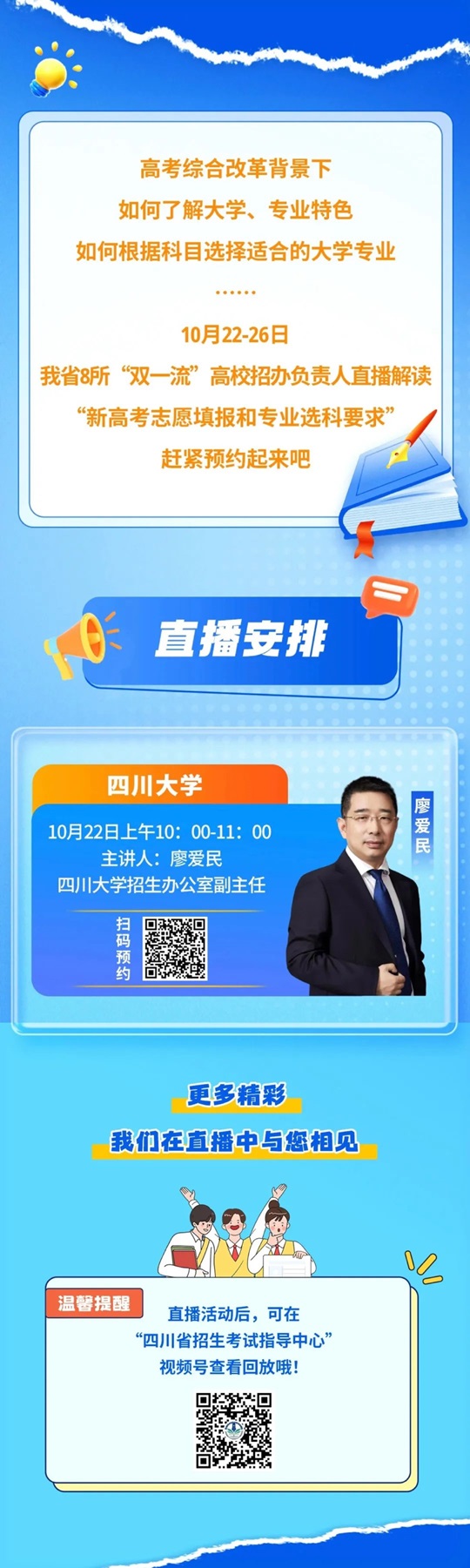 直播預告︱22日上午10點四川大學新高考志愿填報和專業(yè)選科直播開講