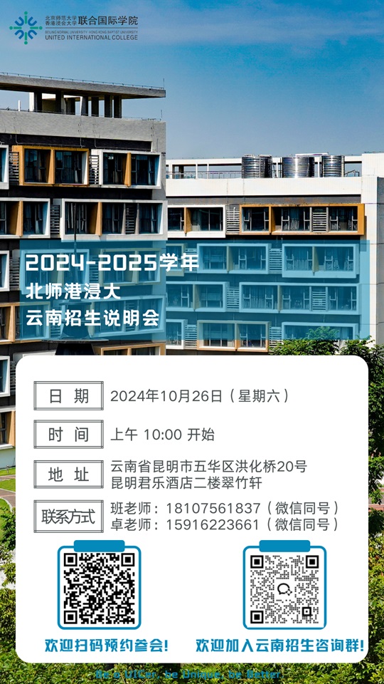 | 云南考生︱北京師范大學(xué)-香港浸會(huì)大學(xué)聯(lián)合國際學(xué)院招生說明會(huì)(10月26日) |