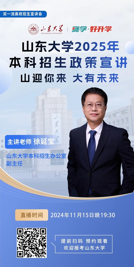 直播預(yù)告丨山東大學(xué)2025年本科招生政策解讀(11月15日)