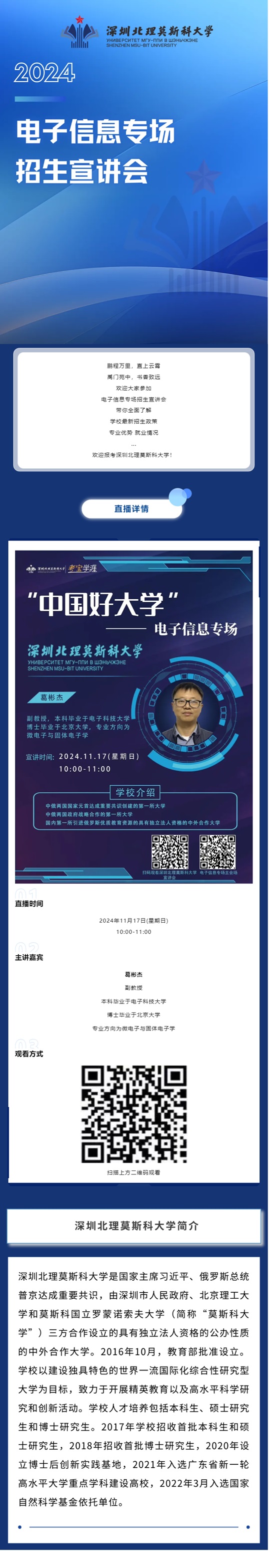 直播預(yù)告 | 深圳北理莫斯科大學(xué)電子信息專場線上招生宣講會(11月17日)