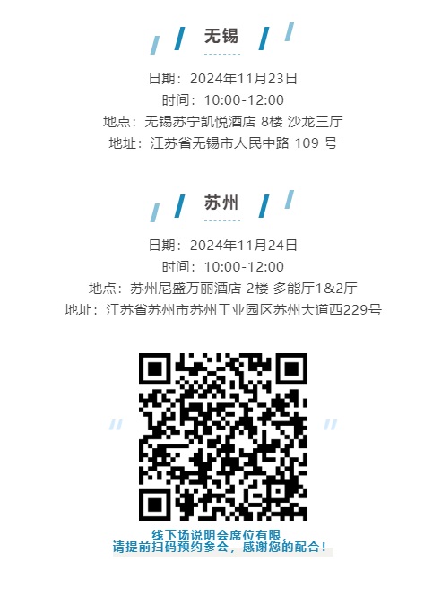 我校招辦將在2024年11月23日及24日在江蘇省無錫市及蘇州市舉行招生說明會(huì),進(jìn)行院校介紹并解讀我校2025年報(bào)考政策,歡迎考生及家長(zhǎng)掃碼預(yù)約參會(huì)。