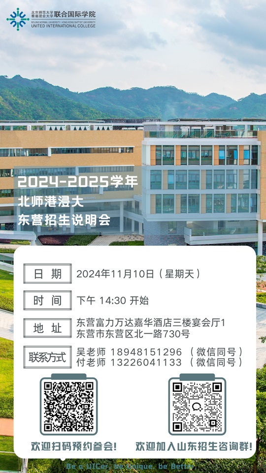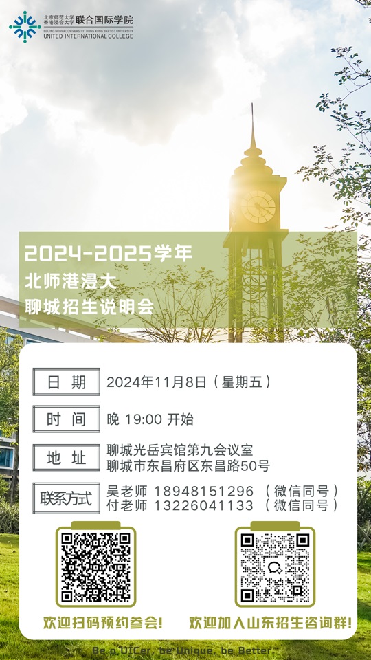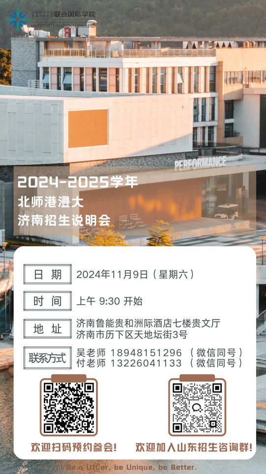 | 山東考生︱北京師范大學(xué)-香港浸會大學(xué)聯(lián)合國際學(xué)院招生說明會(11月8日-10日) |