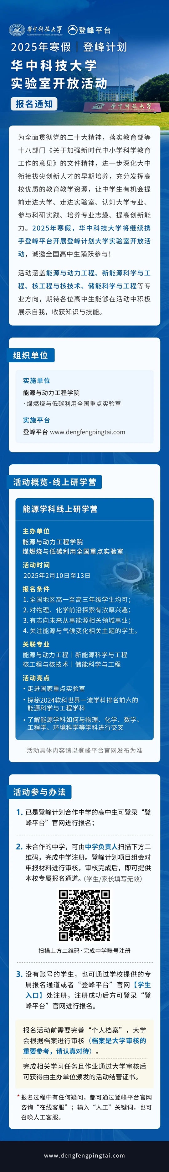 【2025年寒假丨登峰計(jì)劃】華中科技大學(xué)實(shí)驗(yàn)室開放活動(dòng)報(bào)名通知