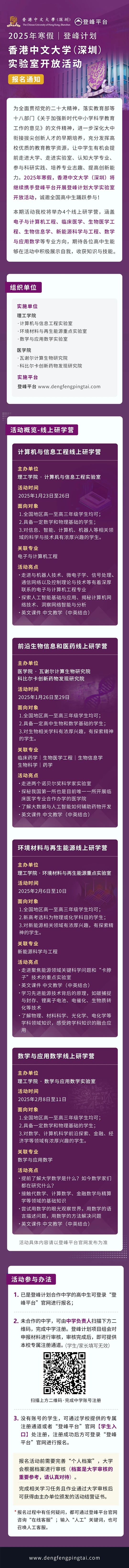 【2025年寒假丨登峰計(jì)劃】香港中文大學(xué)(深圳)2025年寒假登峰計(jì)劃大學(xué)實(shí)驗(yàn)室開放活動(dòng)報(bào)名通知