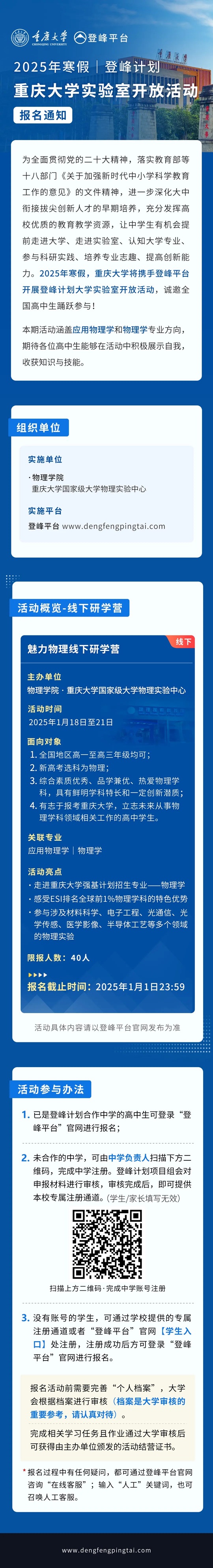 【2025年寒假丨登峰計(jì)劃】重慶大學(xué)2025年寒假登峰計(jì)劃大學(xué)實(shí)驗(yàn)室開放活動(dòng)報(bào)名通知
