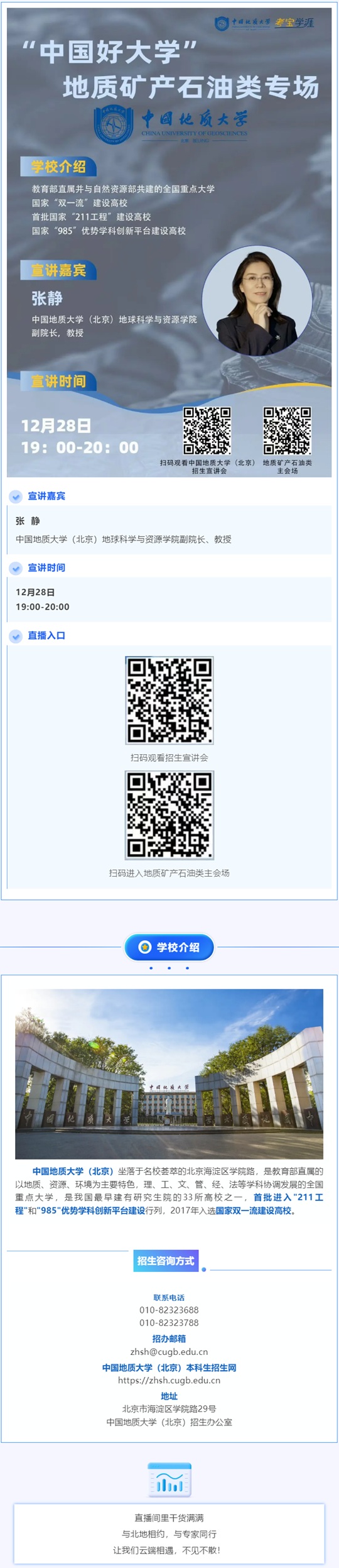 | 直播預(yù)告 | 中國地質(zhì)大學(xué)(北京)招生宣講(12.28) |