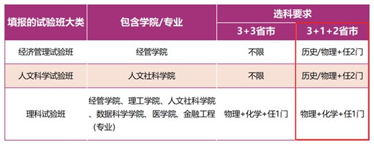 注意:福建省考生選科要求詳見上表3+1+2省市要求。